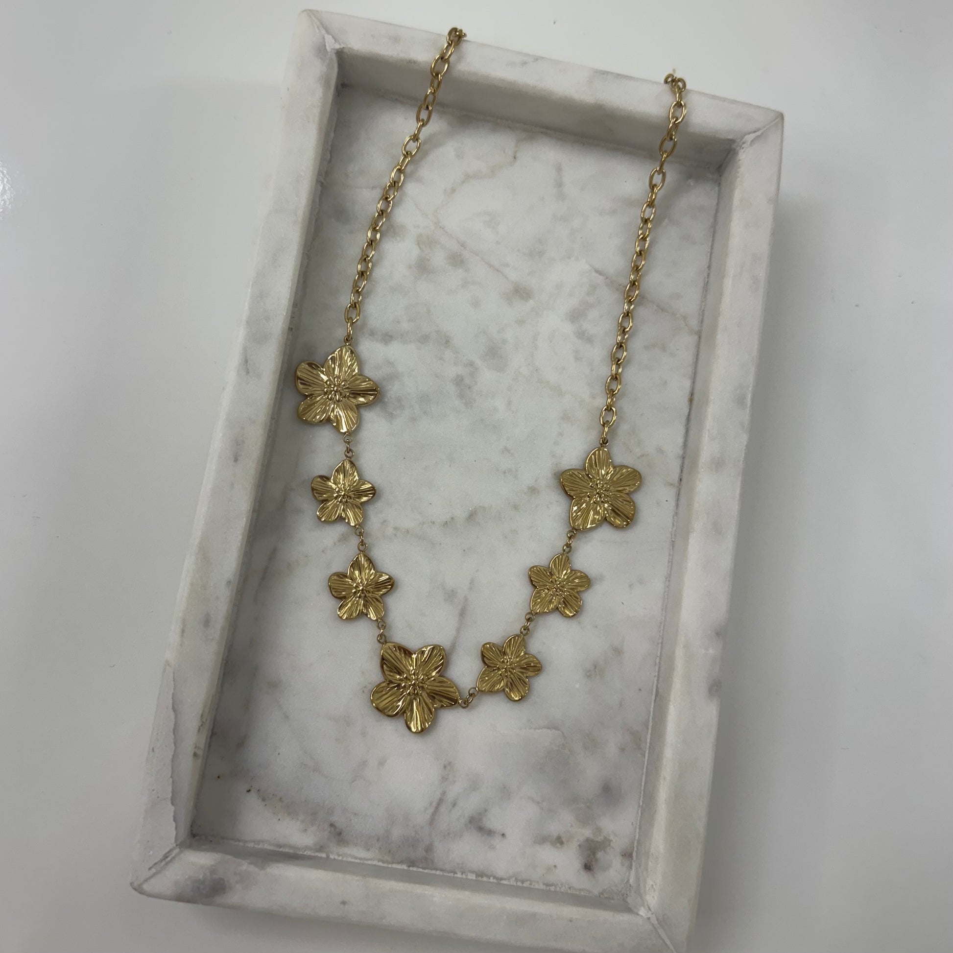 De Floral Bloom Ketting is een elegante en tijdloze ketting met een verfijnd bloemdesign dat zorgt voor een zachte en vrouwelijke uitstraling. Het subtiele maar stijlvolle ontwerp maakt deze ketting perfect om elke outfit een frisse en romantische touch te geven, of je nu kiest voor een casual look of een speciale gelegenheid.